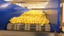 加工したジャガイモを供給している Schaap Holland社は、年間45,000トンのジャガイモを小売店や飲食業界向けに出荷しています。ジャガイモの選別、洗浄、皮むきが加工工場で行われますが、これらはほぼ全自動化されています。連続したベルトコンベア上で加工後の洗浄を終えたジャガイモは冷却トンネルを通過します。全工程が停止することを避けるために、包装機械の計量システムの直前にバッファコンベアを設置しています。