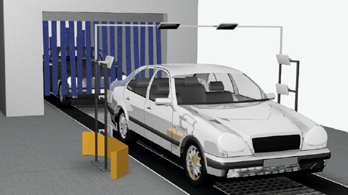 タークはUHF帯RFID技術を用いた水漏れ検査の自動化のソリューションを提供しています。粘着シール付きのRFIDタグを自動車の要所要所に貼り付け、そのRFIDタグのインピーダンスを読み取ります。インピーダンスは水分により変化するため、スプリンクラーなどの水漏れ検査工程の前後においてインピーダンスを比較を行い、これを生産情報システムに送信します。