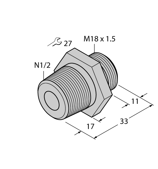 F(T)CSTシリーズのフローセンサ用のねじ込み式アダプタ、Tピースまたは溶接スリーブへのねじ込み、プロセス接続1/2” NPT外部ねじ |